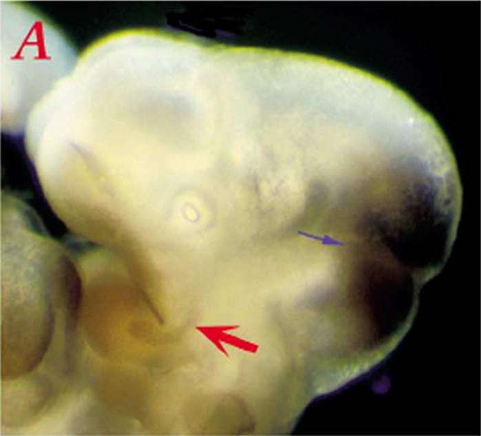 Figure 1A of Degenhardt et al., 2002 [PMID:11804784] . Copyright: Reprinted with permission from Elsevier from [doi:10.1016/S0925-4773(01)00618-9] Mech Dev 111: 125-36, Degenhardt K; Rentschler S; Fishman G; Sassoon DA, Cellular and cis-regulation of En-2 expression in the mandibular arch. Copyright 2002.
