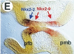Fig4E.Copyright: Reprinted with permission from Elsevier from [doi:10.1016/S0925-4773(98)00035-5] Mech Dev 73: 85-93, Pabst O; Herbrand H; Arnold HH, Nkx2-9 is a novel homeobox transcription factor which demarcates ventral domains in the developing mouse CNS. Copyright 1998.