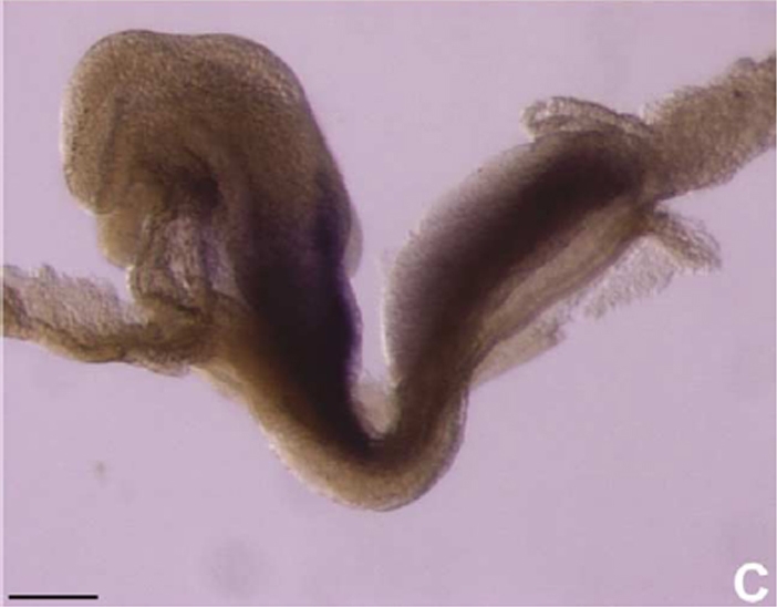 Figure 3C. Copyright: Reprinted with permission from Elsevier from [doi:10.1016/j.modgep.2004.03.003] Gene Expr Patterns 4: 505-11, Elms P; Scurry A; Davies J; Willoughby C; Hacker T; Bogani D; Arkell R, Overlapping and distinct expression domains of Zic2 and Zic3 during mouse gastrulation. Copyright 2004.