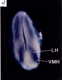 Fig4D of [doi:10.1038/ng0497-397] Good DJ; Porter FD; Mahon KA; Parlow AF; Westphal H; Kirsch IR, "Hypogonadism and obesity in mice with a targeted deletion of the Nhlh2 gene." Nat Genet 1997 Apr;15(4): 397-401. [PMID:9090387] © Nature Publishing Group. Reproduced with permission from Nat Genet.