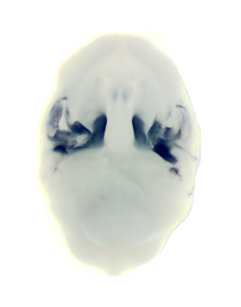Photograph prior to 3D imaging. Strong Barx1 expression in posterior palatal shelf and weak expression in nasal septum.