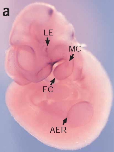 Fig2A from [doi:10.1038/ng1549] Nat Genet 2005 37: 520-525, Jadeja S; Smyth I; Pitera JE; Taylor MS; van Haelst M; Bentley E; McGregor L; Hopkins J; Chalepakis G; Philip N; Perez Aytes A; Watt FM; Darling SM; Jackson I; Woolf AS; Scambler PJ, Identification of a new gene mutated in Fraser syndrome and mouse myelencephalic blebs. [PMID:15838507] © Nature Publishing Group. Reproduced with permission from Nat Genet.