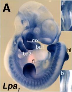 Figure 3A. [doi:10.1002/dvdy.21736] Copyright. This image is from Ohuchi H; Hamada A; Matsuda H; Takagi A; Tanaka M; Aoki J; Arai H; Noji S, "Expression patterns of the lysophospholipid receptor genes during mouse early development." Dev Dyn 2008; 237: 3280-94. Reprinted with permission of Wiley-Liss Inc. [PMID:18924241] .